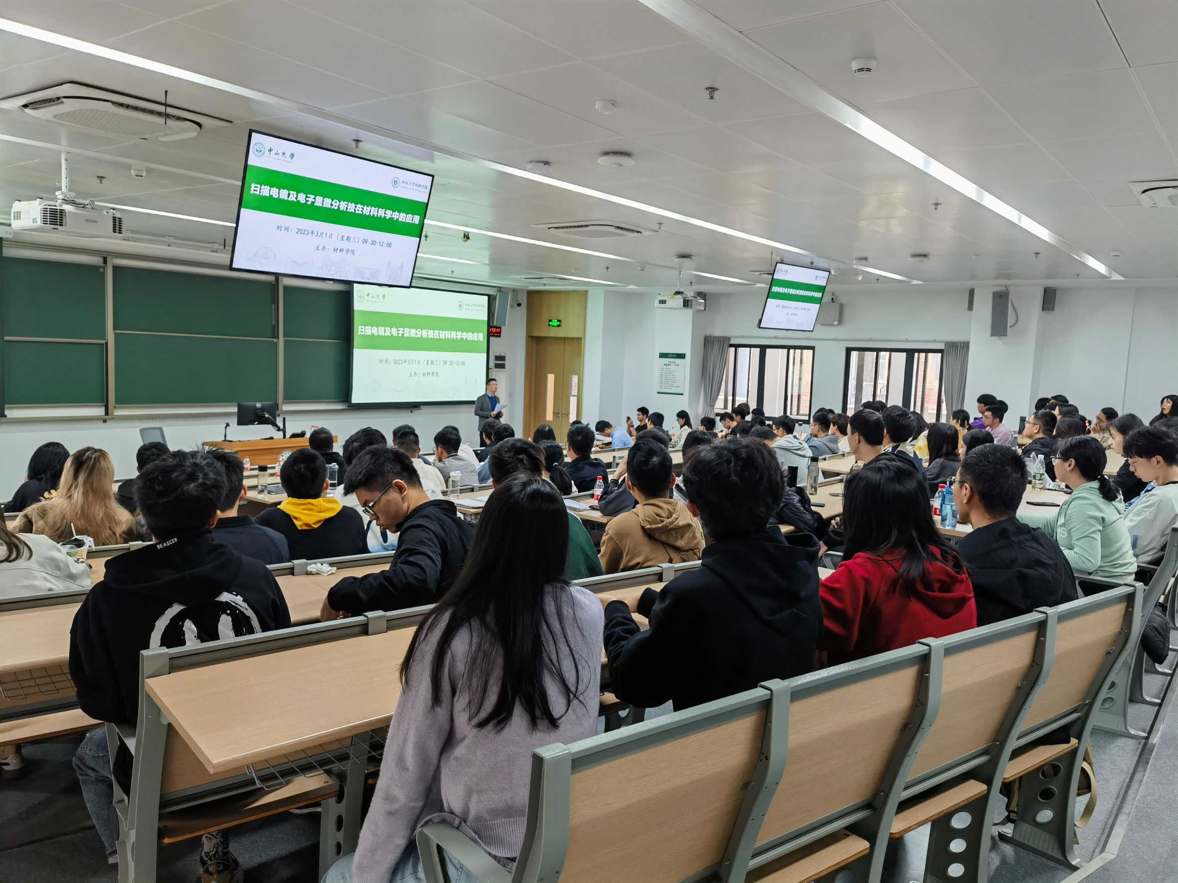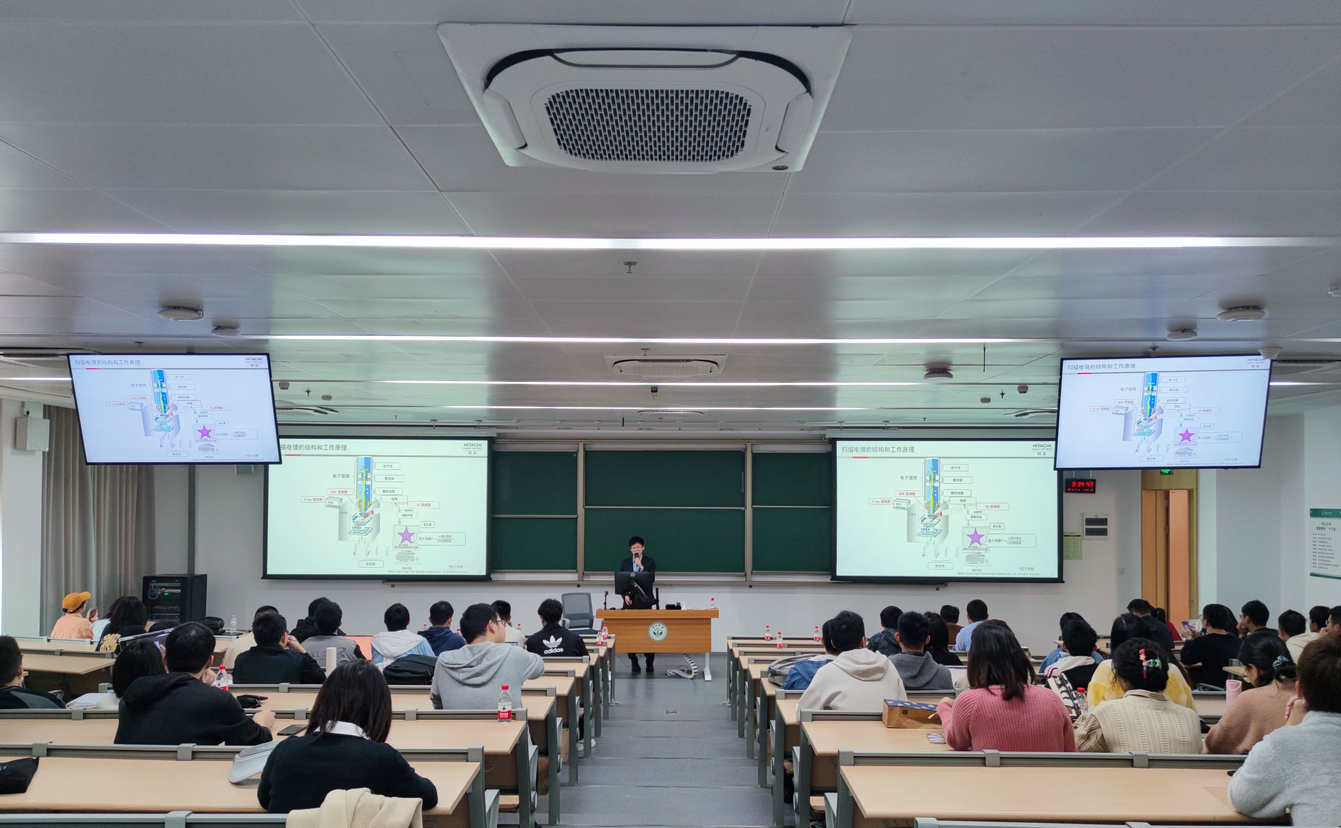 为使我院师生更加深入地了解扫描电镜技术及其应用,充分发挥大型仪器设备功能,提高使用效率。2023年3月1日上午,太阳成集团tyc9728实验教学中心邀请日立科学仪器(北京)有限公司市场部部长高敞和Bruker-布鲁克(北京)科技有限公司应用工程师韦家波,在深圳校区举办了扫描电镜及电子显微分析技术在材料科学中的应用讲座。会议由实验教学中心主任曹发和教授主持,副主任李财富副教授以及一百余位师生参加了本次讲座。